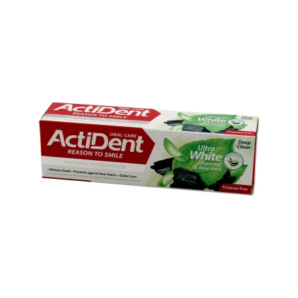 خمیردندان اکتیدنت- الترا وایت حاوی ذغال و عصاره آلوئه ورا با ویژگی سفیدکنندگی 100گرمی
