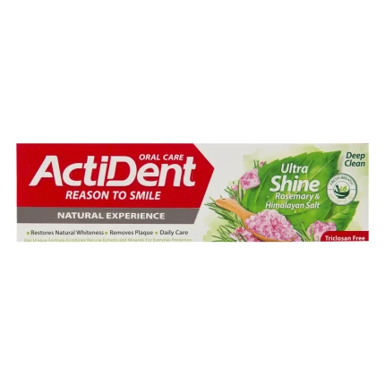 خمیردندان اکتیدنت-الترا شاین حاوی نمک هیمالیا و عصاره رزماری با ویژگی سفیدکنندگ 100کرمی